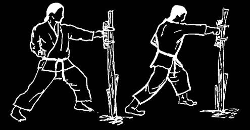 Intorno alla parte che s’intende colpire (localizzabile a un’altezza leggermente inferiore alle proprie spalle stando in posizione da combattimento o in quella del Cavaliere) si deve avvolgere della gomma o della pelle, per evitare abrasioni alle nocche.